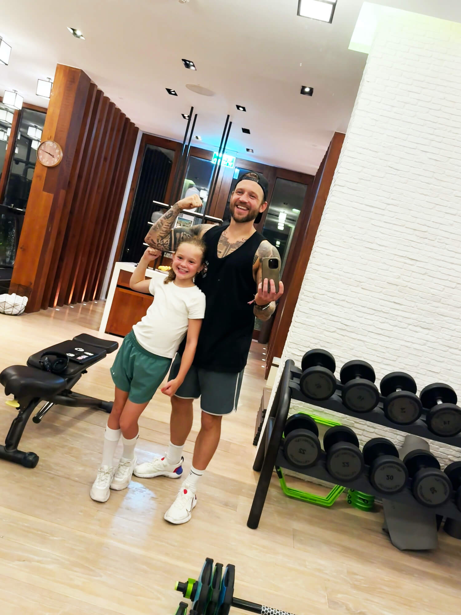 – Jeg har en gorilla tatovert på skulderen også – det var faktisk den første tatoveringen jeg tok. Jeg har dyr over hele kroppen og på veggene. Så det synes at vi er glade i dyr.