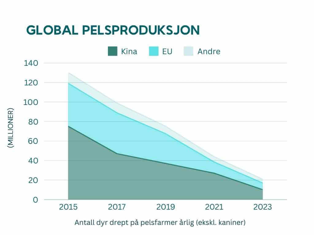 Fortsatt lider mange dyr i pelsindustrien, men i løpet av de siste ti årene har antallet dyr som drepes i pelsdyroppdrett globalt blitt redusert med over 80%. Antall pelsdyrfarmer i EU har i samme periode blitt redusert med nesten 80%, det gjenstår nå bare litt over 1000 pelsfarmer i hele EU. Også i Kina, som lenge har vært en dominerende aktør innenfor pelsproduksjon, ser man nå en tydelig nedgang i antall drepte dyr.